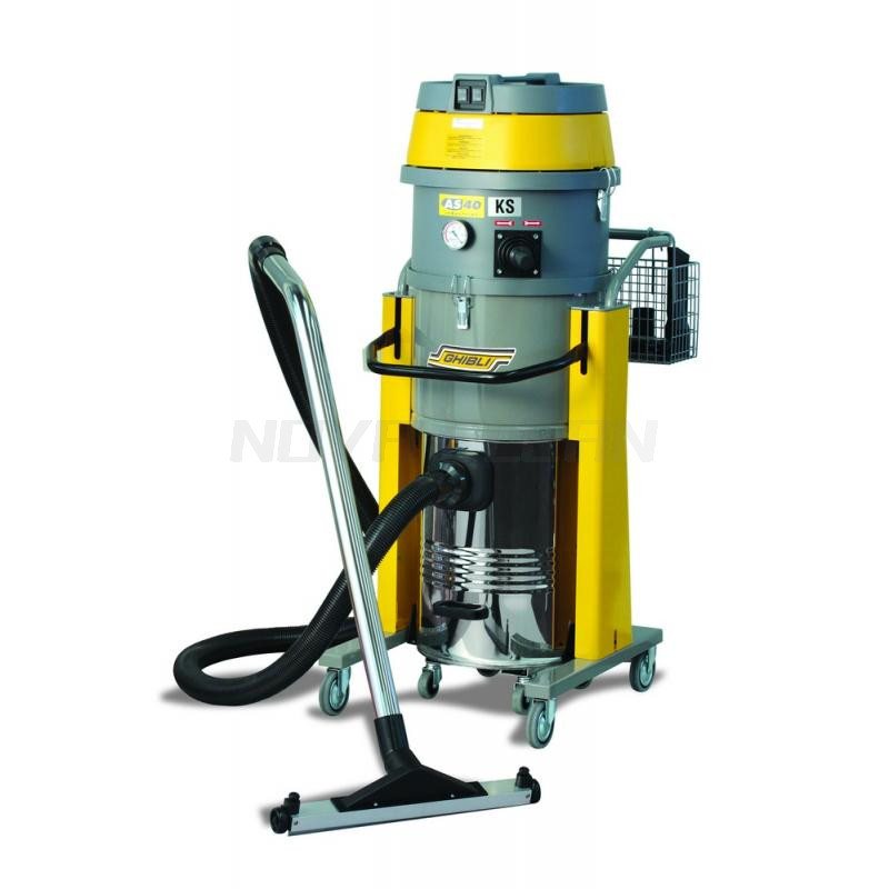 Vysávač Ghibli AS 40 KS je výkonný a všestranný jednofázový priemyselný vysávač s veľkou 59 l nádržou INOX, určený pre suché vysávanie s veľkým obsahom, mechanickým oklepom filtra, manometrom, zobrazujúcim úroveň znečistenia filtrov a vysokým výkonom ktorý zabezpečujú 3 motory, disponuje antistatickou úpravou KIT.